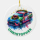 Christmas Race Car Racing Fan Custom Name Ceramic Ornament