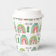 Rainbows and christmas trees holiday paper cups for drinks or coffee.