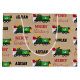 A cute illustration of a Christmas recycling garbage truck wearing a Santa hat and decorated in Christmas lights with words "Merry Christmas" on a kraft brown paper look background and your own custom name. An ideal Christmas gift bag for garbage truck enthusiasts big or small, girls or boys. Customize the name and make it your own.