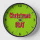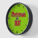 Round Wall Clock, wall art decor and decorative home furnishing decor accessory printed with Christmas Red And Brat Green text typography graphic art design illustration and select products collection by TheFabricSeal print on demand shop at Zazzle.com #ZazzleMade https://www.zazzle.com/store/thefabricseal TheFabricSeal©️Original.