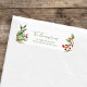 This design features a Christmas return address label, with red and green, holiday labels with a family name and address, perfect for an informal casual, handwritten script, a stylish trendy, botanical style with greenery, holly berries
