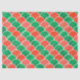 Wrap your Christmas stocking stuffers in stylish tissue paper featuring a reproduction of a hand-painted pattern. Rows of alternating red and green scales with white borders form diagonals of color across the interlocking geometric pattern. Paint strokes are visible in the red and green fan shapes and show variations in the colors.