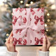 Christmas Red Bow on Pink Background Wrapping Paper