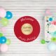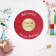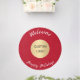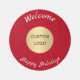 Personalize and add your business logo. Red background color. Text: Welcome and Happy Holidays
