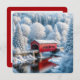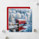 Christmas Red Covered Bridge In Winter Forest Holiday Card
