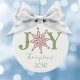 Simple snowflake typography design. A personalized custom modern holiday Christmas photo ornament that features name and year. A wonderful addition to your family tree or makes a great gift. This design features Christmas holiday red and green, cute snowflake joy typography, holiday home décor, festive whimsical winter script, winter colorful bright, Christmas tree décor, family personalized name, custom customize simple minimalist, Christmas decoration, Christmas gift ideas