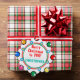 Merry Christmas to You is written in snowcapped white red typography against white background. Insert NAME written in Teal lettering (click to Edit to change font background color, or to increase/decrease font size of Name to fit within green circle). Backside is solid red color with Love written in white curved typography. Insert NAMES and YEAR. Look of festive snowflake colorful lights ornaments in red, green, blue, orange, yellow, pink on outside border. Inside double rings in festive green and red with smaller geometric circles in silver and gold outlined in sky blue. Original Artwork Design by TamiraZDesigns.