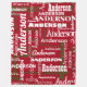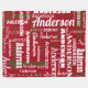 This fun and festive red Christmas repeating long name word graffiti pattern blanket features your own family name in classic Christmas colors of green and white in a typography pattern of different fonts. This is a great family gift and a super cozy blanket to bring out at Christmastime, and is the perfect gift for parents and grandparents!