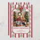 Christmas red retro stripes pine bow photo holiday card