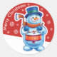Christmas red round sticker Snowman drummer. and other Snowfolk.