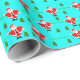 Christmas Red Santa Tree Turquoise Wrapping Paper