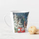 Christmas Red Truck Santa Rustic Winter Holidays Latte Mug features a rustic winter design with a red truck, snowman, reindeer, cabin, Christmas tree and Santa. Designed by Evco Holidays www.zazzle.com/store/evcoholidays