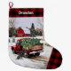 Christmas Red Truck Stocking - Watercolor Vintage Christmas Style - Unique Rustic Farmhouse Decor, Family Gift for Him