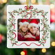 Christmas Red Wavy Frame Bow Greenery Photo Ceramic Ornament