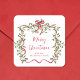 Christmas Red Wavy Frame Bow Greenery Square Sticker