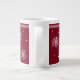 Deep red Christmas mug with white reindeer and snowflakes.
