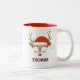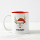 A Christmas reindeer face with a Santa hat decorates this mug. Makes a cute Christmas gift for a boy. Personalize this unique mug for a boy you know. Designed for you by Blackberry Boulevard.
