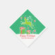 Share the fun of the Happy holiday season with this fun red, green and white, Christmas reindeer prancing over Christmas gifts personalized napkins. A great napkin for a Christmas holiday gathering or Happy holidays parties. Personalize with your family name. A great addition to your Christmas festivities. Art and design by Sarah Trett.