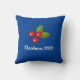 Bright red ornaments decorate the horns of this Christmas Deer, silhouetted in bright green, ready to decorate your home for the holidays. Reverse features a bright red and green cranberry cluster with green leaves. Customize the pillow with your own holiday greeting and year. Makes a great gift for friends or as a memory for your self.