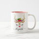 A cute reindeer face with flowers decorates this mug. Makes a cute Christmas gift for a girl. Personalize this unique mug for a girl you know. Designed for you by Blackberry Boulevard.