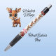 Celebrate the xmas holiday season with this cute and funny cartoon reindeer! This whimsical deer woodland animal character ink pen in white is the perfect stationery for gifting, This deer with antlers includes festive poinsettia graphics and a customizable "Merry Christmas" message in red text. Personalize the text to make it a unique doe gift for friends, family, or colleagues! Makes for a perfect wildlife stocking stuffer, office accessory, school supply or special fawn holiday keepsake. 🦌