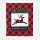 Christmas Reindeer Red Buffalo Plaid Custom Name Fleece Blanket