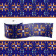 A charming design featuring reindeers with Santa surrounded by festive holiday botanicals—holly, mistletoe, and glowing lanterns—set against a rich blue background. Playful snowflakes and twinkling stars are scattered throughout, adding a whimsical winter feel. This festive ribbon is perfect for adding a magical touch to holiday gift wrapping, decorating wreaths, or accenting Christmas tree garlands. With its enchanting blend of holiday cheer and elegant design, it’s a delightful choice for both children and adults who love the warmth and sparkle of the season.