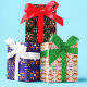 A lovely design of reindeers with Santa surrounded by cheerful holiday botanicals—like holly, mistletoe, and lanterns—set against a striking background of black, pink, and blue. Playful snowflakes and twinkling stars scatter across the pattern, adding a whimsical, wintry touch. This festive design brings joy to children and adults who adore the magic of the holidays.