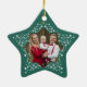 Celebrate the true meaning of the season with our Light of Bethlehem Nativity Photo Christmas Ornament. This charming ornament features our floral design beautifully framed with delicate hand-drawn florals, while the center showcases a touching illustration of Mary, Joseph, and baby Jesus, all set against a rich dark green border and personalized with a name. The reverse side features a personalized photo with a delicate floral star frame design. Part of our Light of Bethlehem Nativity Christmas Collection, this ornament is the perfect gift for loved ones or a meaningful addition to your own holiday decor. Original design and illustration by ©Moodthology Papery
