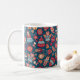 This fabulous blue Christmas folk art mug with a pattern of santas, gingerbread men, Christmas trees, ornaments, angels and presents would look awesome on your table, desk, or kitchen! It's so festive and will go with any Christmas decor - it's rustic yet retro and modern yet traditional! It'll look fantastic and add that little extra Christmas touch! It coordinates perfectly with the Christmas Folk Art Blue linens and coasters.