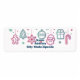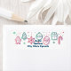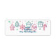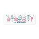 A festive address label featuring holiday themed icons like a gingerbread man, Christmas tree, and ornaments.