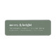 A stylish modern holiday return address label featuring a bold retro typography quote “Merry & Bright” in white on a dark sage forest green background. This trendy and minimalist design combines classic holiday charm with a clean, contemporary look. Personalize it easily with your own greeting, family name, and address for a unique touch that feels both festive and refined. Perfect for pairing with our matching holiday card collection in the same elegant design, this label adds a polished and coordinated finish to your seasonal stationery. A bold yet simple choice that stands out beautifully and brings a modern twist to your Christmas mail.