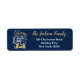 Religious Christmas Return Address labels in blue and gold with wordings: "Glory to the newborn king"