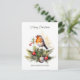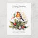 This design features a watercolor illustration of red - breasted robin perched on a branch of pine.