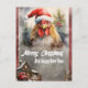 Rooster farm chicken merry, snow funny watercolor painting ,art christmas bird hat, tree animal domestic snow ,cold santa claus snowflake ,happy winter holiday christmas, cute rooster