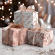 This set of 3 wrapping paper sheets features a Christmas pattern of holly leaves in 3 coordinating rose gold color schemes: metallic rose gold foil, white on rose gold, and rose gold on white.
