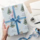 Christmas Rustic Blue Grey Green Deer Tree Wrapping Paper