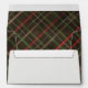 Modern stylish Christmas holidays greeting card envelope with a red burgundy and hunter green tartan plaid pattern and return address with your custom red monogram / name initial.
