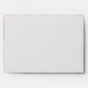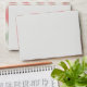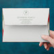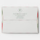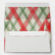 Modern stylish Christmas holidays greeting card envelope with a coral red and pine green geometric watercolor plaid pattern and return address with your custom green monogram / name initial.