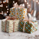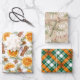 This festive country Christmas wrapping paper set consist of 3 holiday patterns: An elegant Christmas scents citrus and spice pattern full of orange slices, pine sprigs, and cinnamon; Rustic kraft paper background with Merry Christmas in a handwritten script font; and a coordinating orange and green plaid pattern.