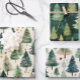 Christmas pine trees range over light and dark colored backgrounds, each of the three forming a rustic design. They stand in a winter forest landscape in these vintage, watercolor pictures, each a little different, but compatible as a group. They will look great as your Christmas and winter holiday gift wrapping choices.