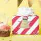 Sand snowman with sunglasses on red and white candy cane stripe background