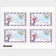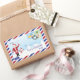 Wrap up mailing or your holiday gift with a pretty rectangular seal that features an airmail envelope with borders in dark blue and red. It has an illustration of Santa Claus in the snow waving a candy cane near a snowman. There’s a small blue label that reads “AIR MAIL PAR AVION “ because all Christmas mail is a priority. It must arrive in time for Christmas! Just like Gifts! This Air Mail envelope has two colorful stamps: in one, there are a snowglobe and Christmas presents, on the other, there’s a Christmas wreath with a yellow bow and red bells. Santa likes to use snail mail. He’s kind of an old-fashioned guy! Total personalizable text.