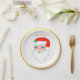 Beautiful Christmas Santa Claus and golden frame on white paper plate. Text Merry Christmas can be personalized.