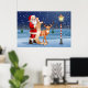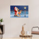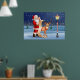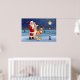 This design features Santa Claus checking his list with his reindeer in a winter wonderland.