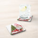 This Christmas beverage coaster features a darling retro Santa with a Christmas tree. Personalize this hard plastic coater with your text or buy as shown with "Merry Christmas in a red font..