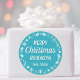 Christmas Santa Custom Name Teal Classic Round Sticker