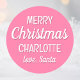 Christmas Santa Custom Name Typography Pink Classic Round Sticker