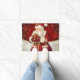Holiday doormat shown in a vintage festive Christmas Santa print.