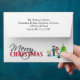 Christmas Morning – CHMO100 © Sunny Mars Designs. Christmas envelope with a cartoon family and the mother and father handing out Christmas gifts to their children or son and daughter with a Christmas tree and presents under it.